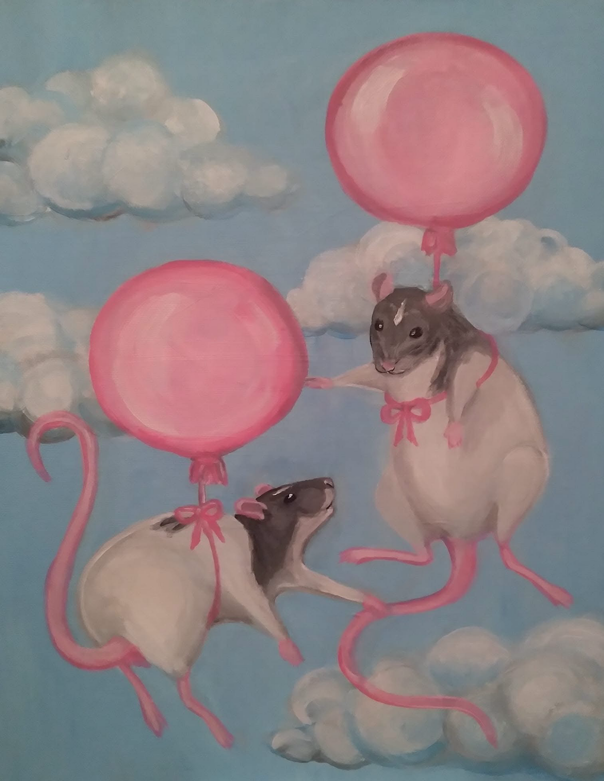 Sisters is a compelling portrait of two pet rats whose relationship defies simple categorization—equal parts playful antagonism and genuine devotion. This artwork speaks to anyone who has witnessed the complex dynamics between animal companions, capturing those moments of mischievous interaction alongside unmistakable affection. A thoughtful piece that honors the surprising emotional intelligence and bonds that form between creatures often overlooked.