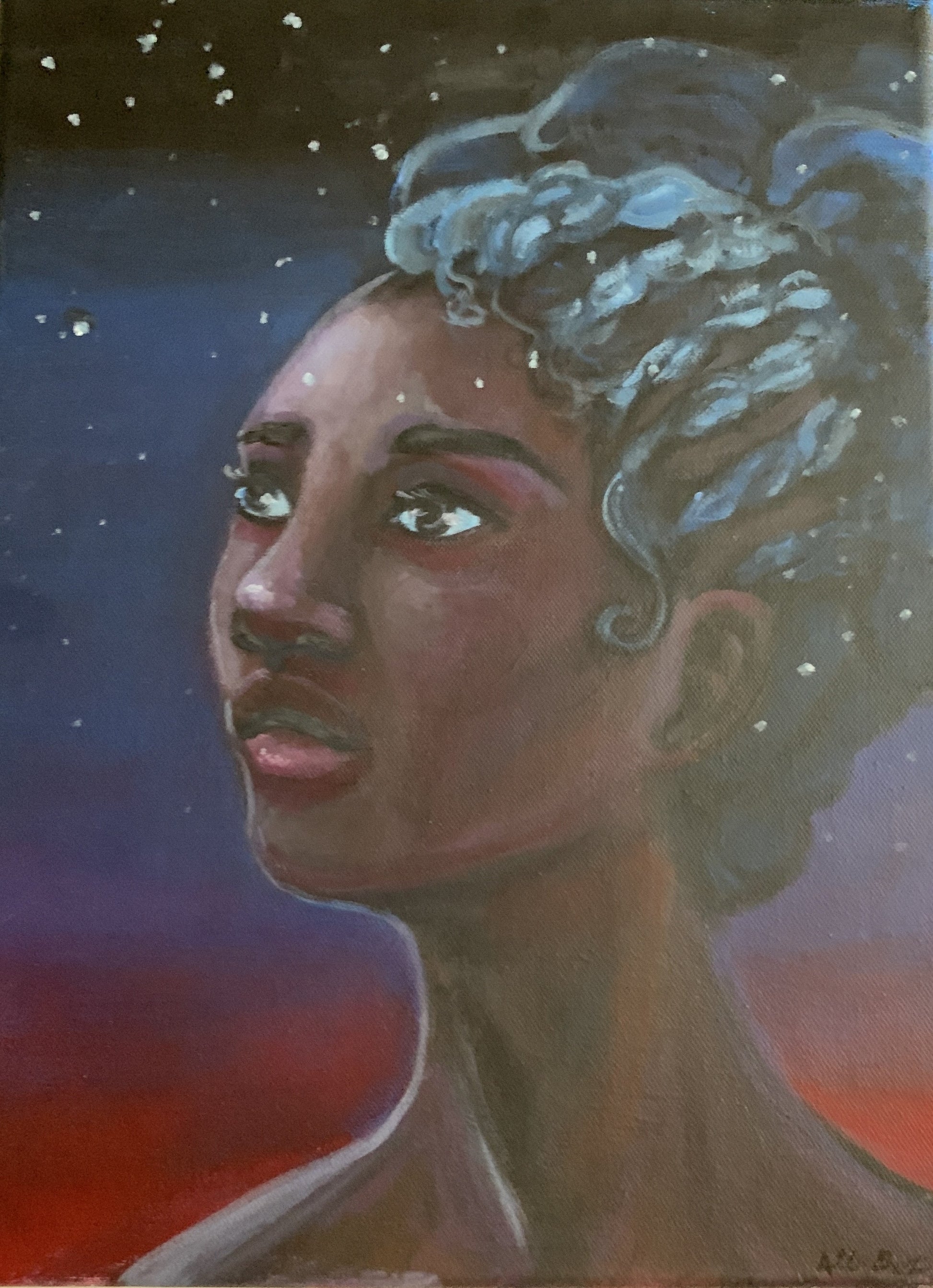 # Twilight Sky Gaze upward and find calm in the deepening dusk. This piece captures that magical moment when day surrenders to night—a sky painted in soft indigos, warm ambers, and gentle purples that whisper reassurance. Whether you're seeking solace during uncertain times or celebrating quiet moments of wonder, let this twilight scene remind you that transitions bring their own beauty. Perfect for creating a peaceful sanctuary in any space.